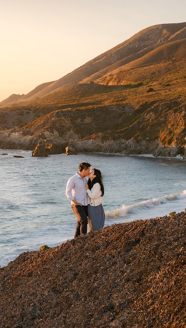 Cinematic coastal engagement session at the Palos Verdes cliffs — golden light, ocean breeze, and intimate sunset portraits.